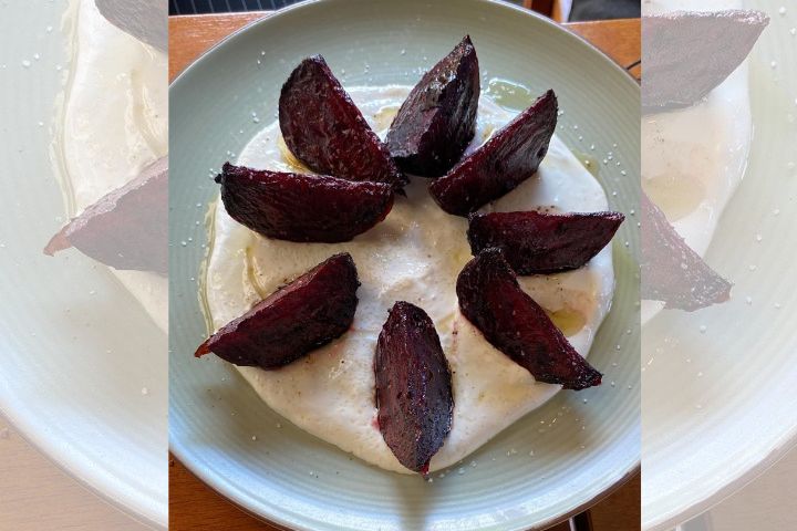 Para acompanhar, um creme azedo delicado, feito com cream cheese, entra em cena como um contraponto perfeito. A acidez suave e a cremosidade envolvente equilibram o dulçor da beterraba, trazendo frescor e leveza ao prato. Juntos, criam uma harmonia simples e sofisticada, onde poucos ingredientes falam alto.