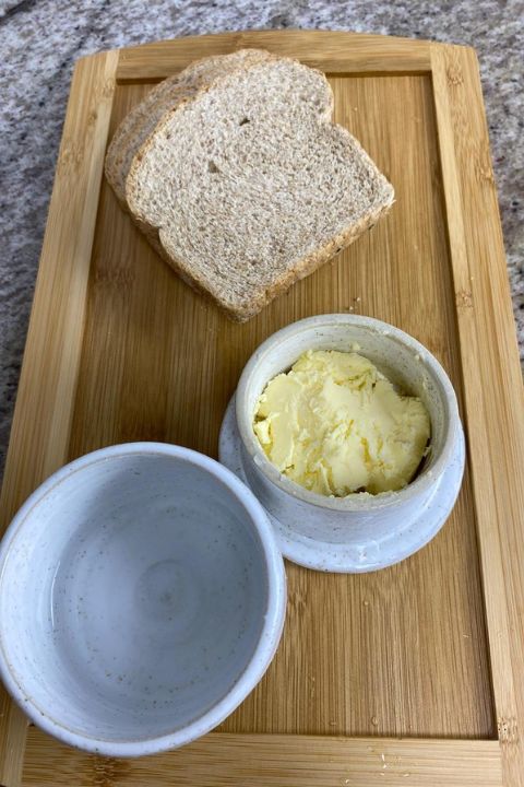 A manteigueira de cerâmica mantém a manteiga macia, fresca e pronta para passar no pão a qualquer hora do dia.